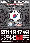 | 2011/09/19 15:03 (2435/1) NH 2011年9月16日東京で行われたフジテレビ抗議デモ関連の1つ。次回は大阪で9月23日予定。 |