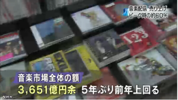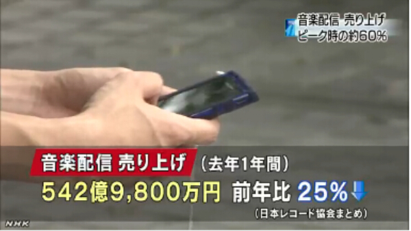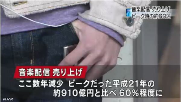 【音楽産業】ネット音楽配信売り上げ ピーク時の6割