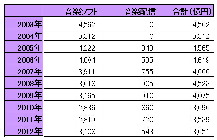 インターネットや携帯電話を通じた音楽配信の去年1年間の売り上げは540億円余りで、ピークだった4年前のおよそ60%にとどまりました。