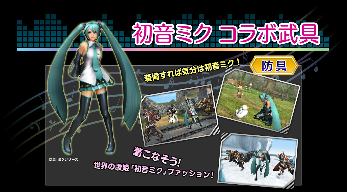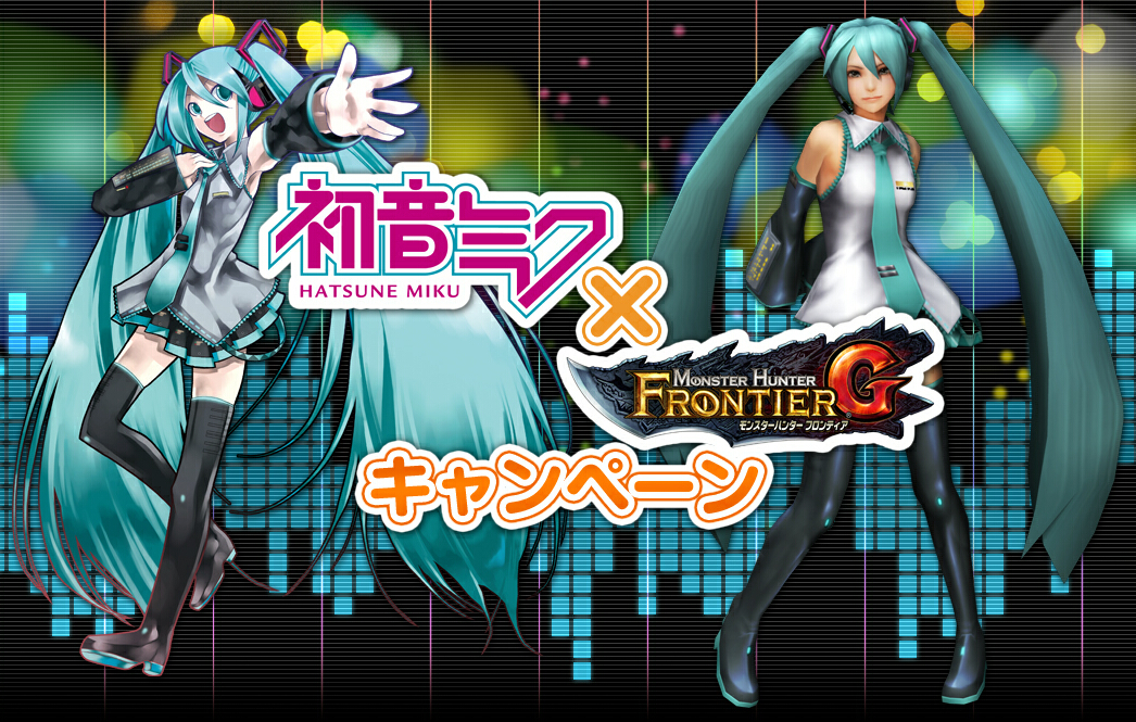 2013年4月17日にモンスターハンターフロンティアのG級解禁とともに初音ミクとコラボ開始!
