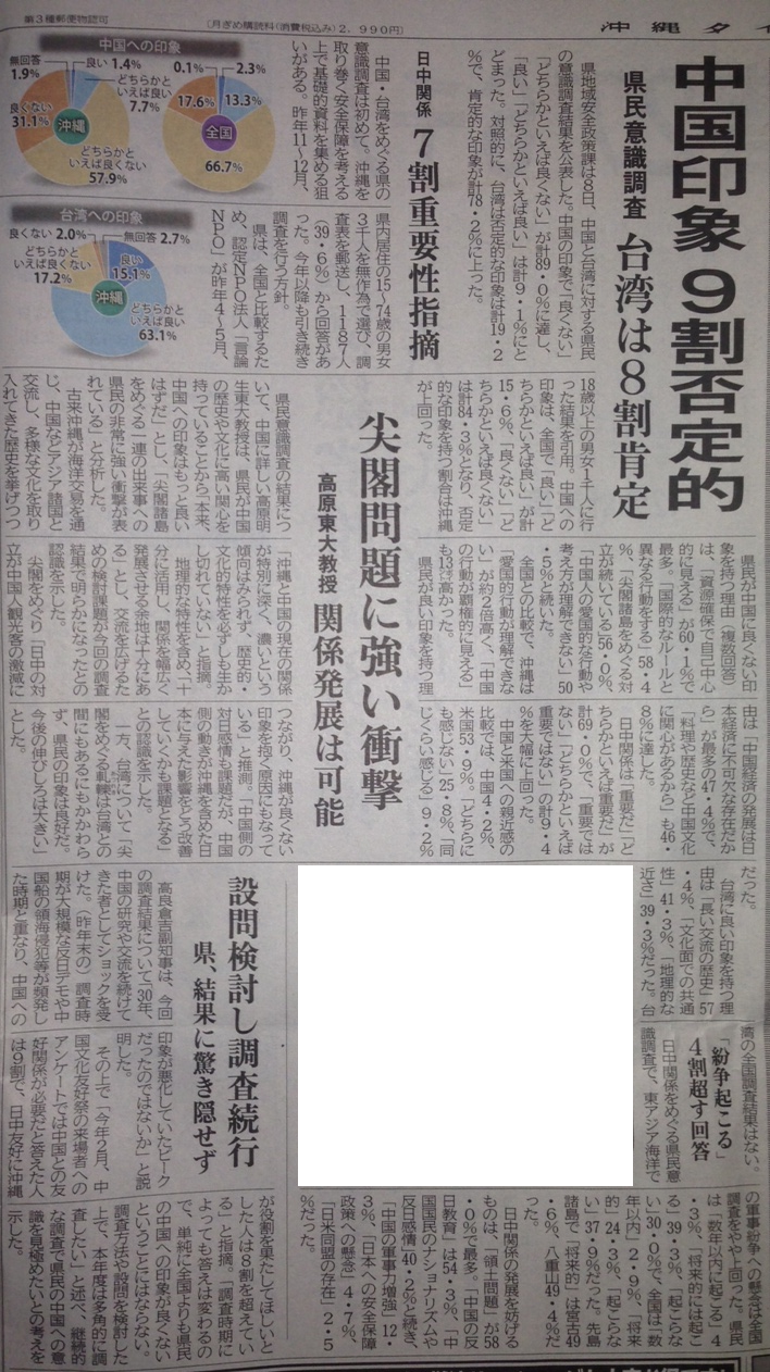 【沖縄県】中国の印象、9割否定的 県民意識調査