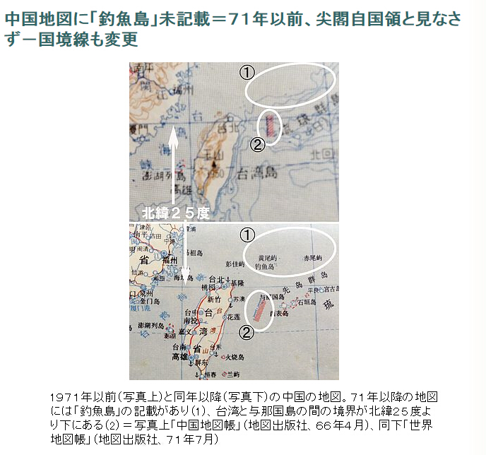 1971年7月までに中国で発行された地図の中に、領有権を主張する沖縄県・尖閣諸島の中国名である「釣魚島」の記載がなかった事実が判明した。