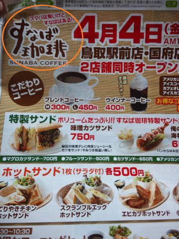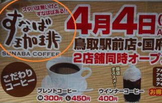 全国で唯一、米系大手コーヒー店チェーン、スターバックスの店舗がない鳥取県に4日、スタバをもじったカフェ「すなば珈琲」がオープンした。