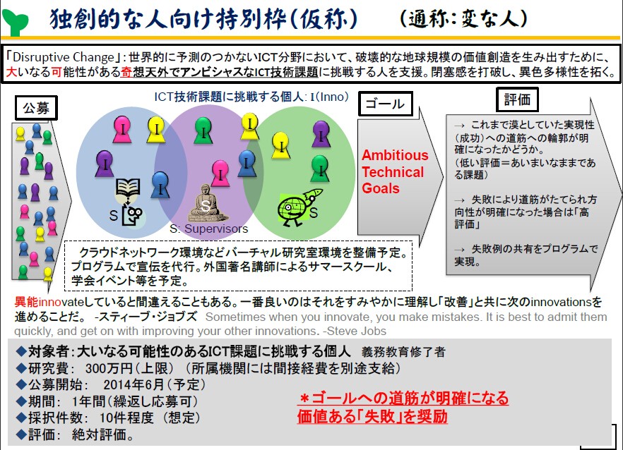 総務省はICT(情報通信技術)分野において破壊的な地球規模の価値創造を生み出すために、大いなる可能性がある奇想天外でアンビシャスなICT技術課題に挑戦する企業や民間団体を募集中。