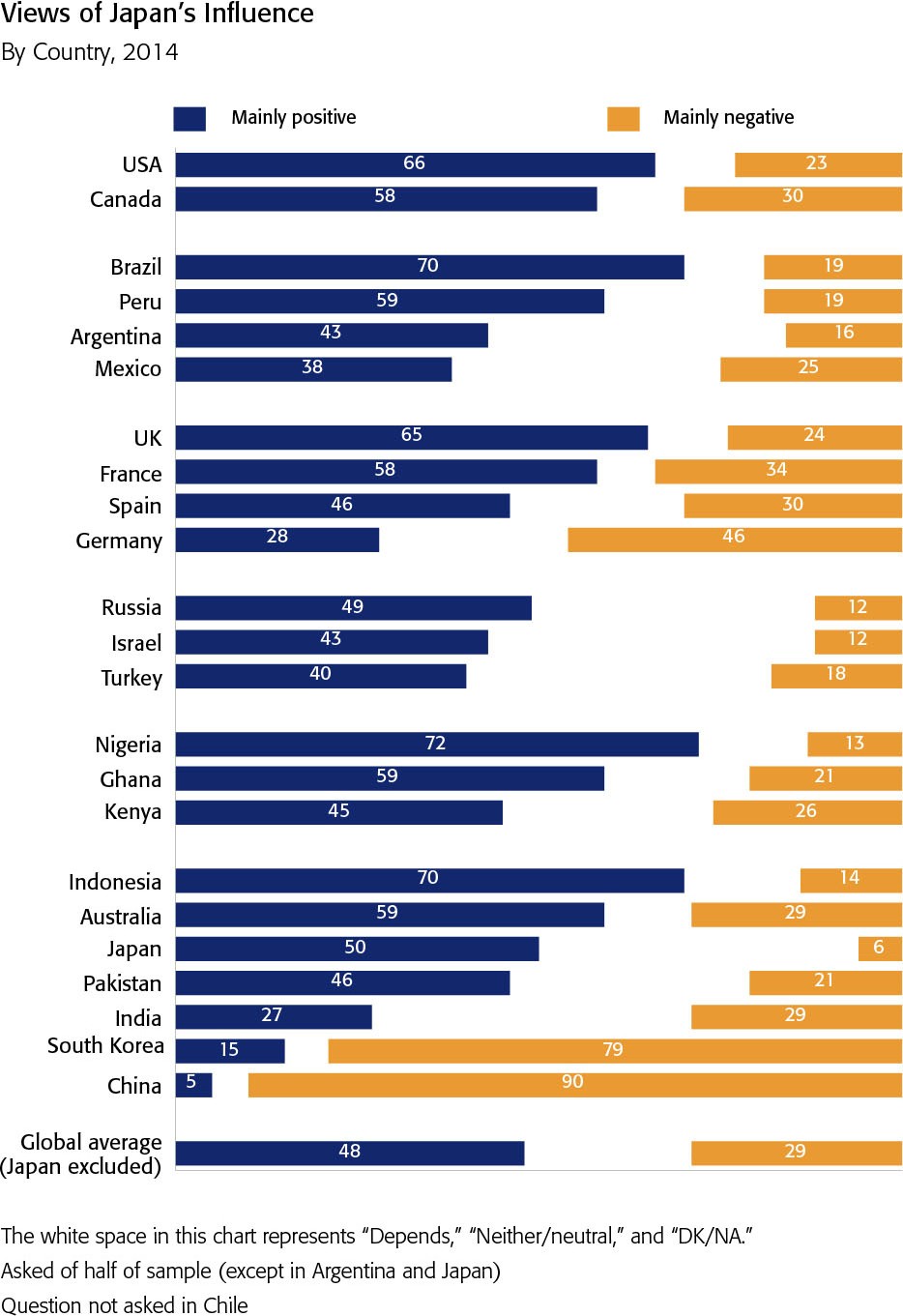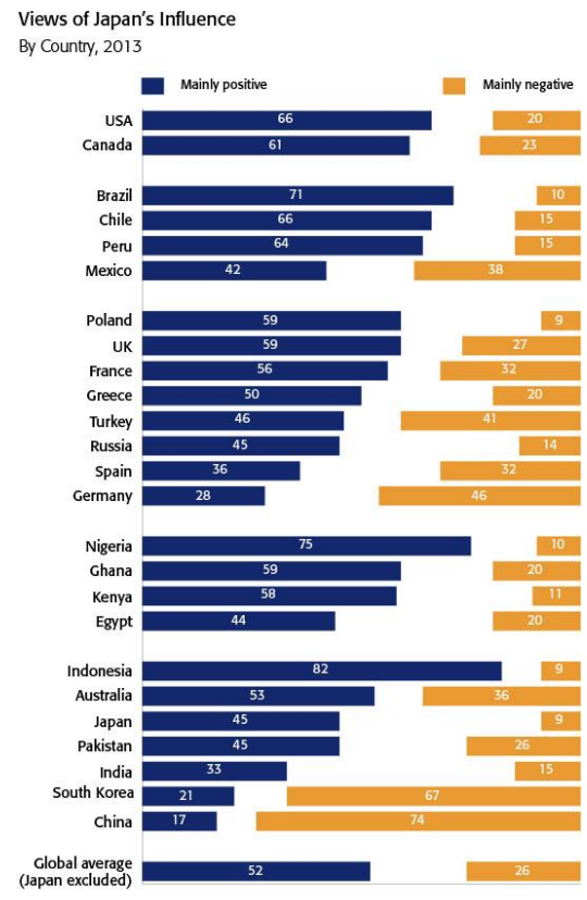 英BBC放送が読売新聞社などと24か国で共同実施した世論調査によると、日本が「世界に良い影響を与えている」は49%で「悪い影響を与えている」の30%を上回った。良い影響のトップはドイツ。