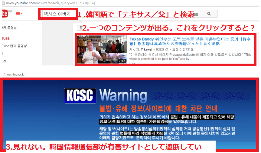 【Twitter】韓国政府、テキサス親父が発信する動画の中で韓国語バージョンをyoutubeから閲覧できないように