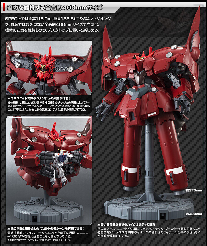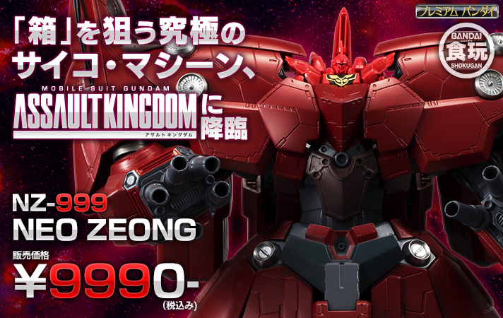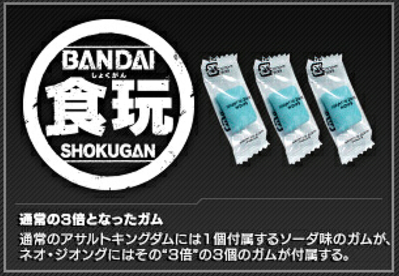 プレミアムバンダイにて「機動戦士ガンダムUC」に登場する超大型MAネオ・ジオングが、全高約400mmの大きさでASSAULT KINGDOMシリーズに登場。通常1つのソーダ味のガムが3つも付属する特別仕様!2015年2月発送予定。