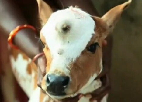 【動画】インドで発見「三つ目牛」の赤ちゃん