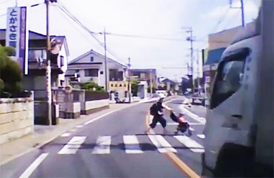 母子がひき殺されそうになる危ない運転!!この運転手に免許は必要?