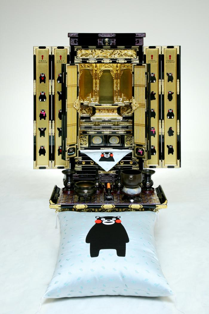 熊本県公認のくまモングッズ第1弾「くまモン仏壇」が発売7年目で初めて売れた。価格は73万5千円(税別)