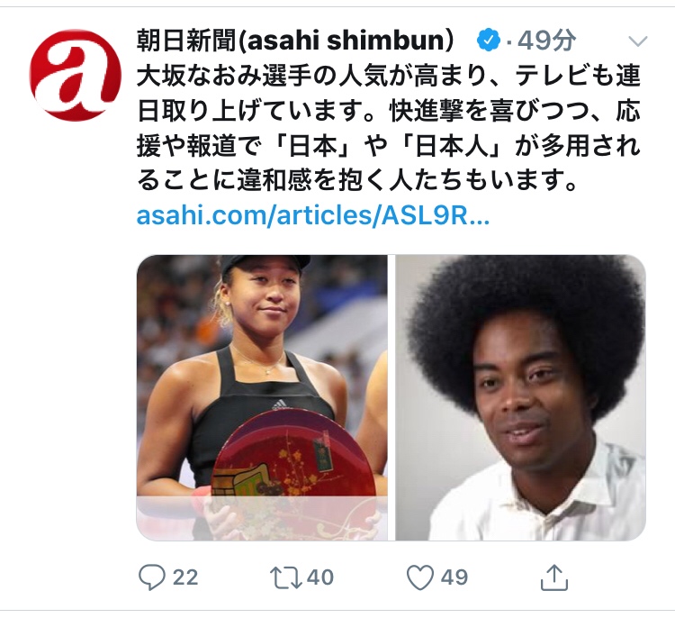 【朝日新聞】大坂なおみさんの報道で「日本」「日本人」を使うことに違和感