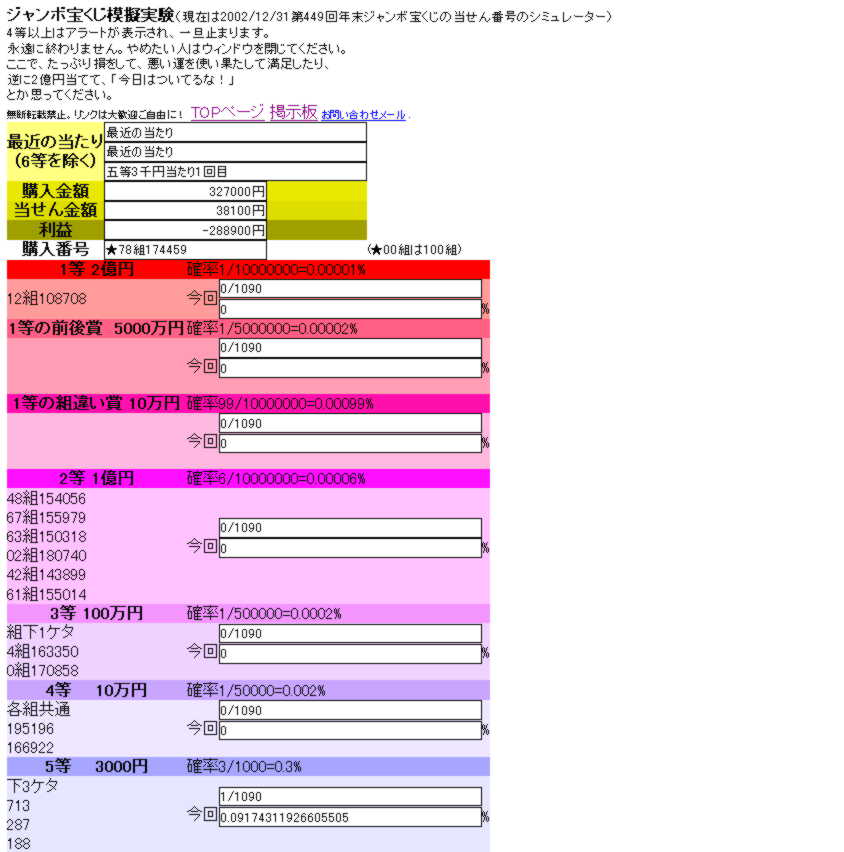 ジャンボ宝くじtotoBIGロト6オンラインカジノ模擬実験