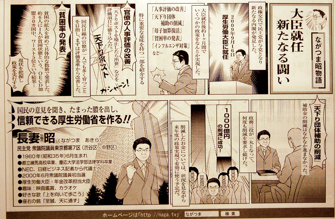 我が党の元厚生労働大臣「長妻 昭」さんの手前味・・・げふんげふん・・。輝かしい足跡をみなさまにアピー