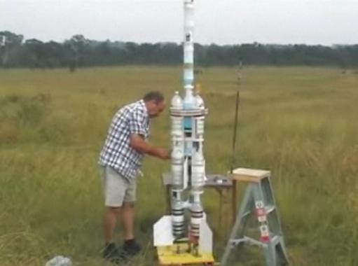 2段階式ペットボトルロケットを246メートル打ち上げる