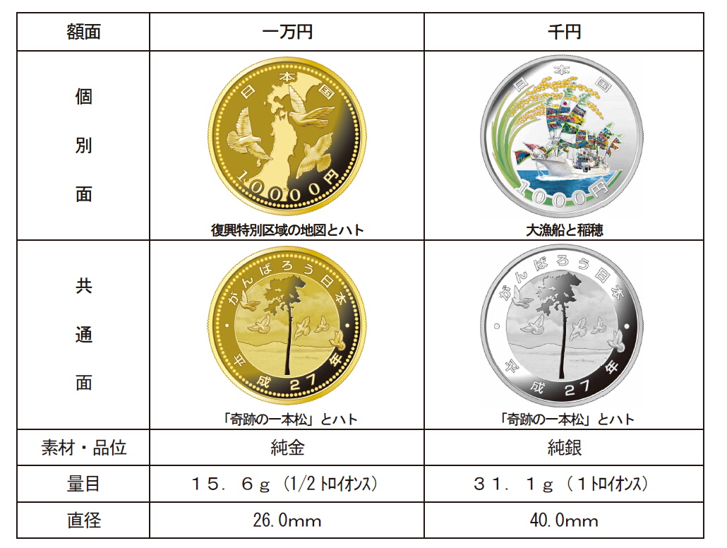 2012年3月5日〜30日の間に被災地の復興目的の国債が発行され額面に応じて記念硬貨がもらえます。