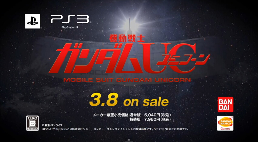2012年3月8日発売。小説からアニメを経て人気の機動戦士ガンダムUCがPS3で発売。