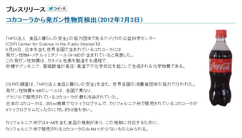 【コカ・コーラ】コーラ中毒者痛恨の一撃!! 日本のコーラから発ガン性物質検出