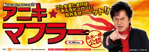 水木一郎アニキのトレードマーク「アニキ★マフラー」。これで仮面ライダーのコスプレもバッチシw