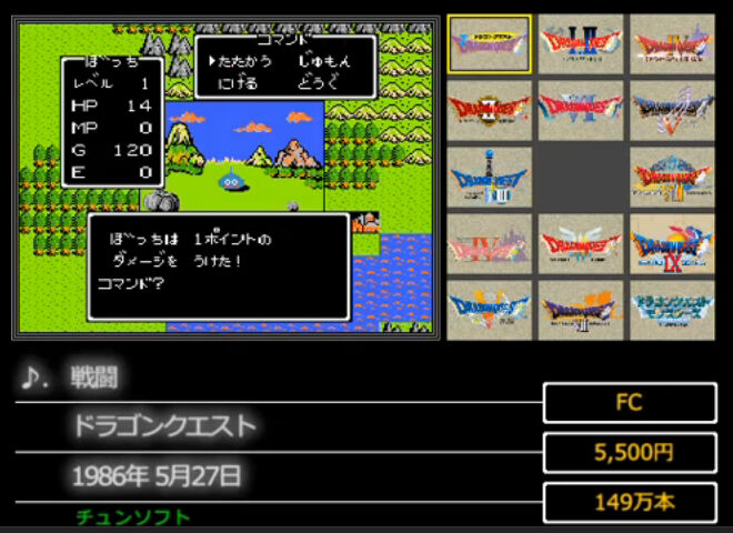 ドラゴンクエストのナンバリングタイトルから戦闘曲を選曲。ゲーム音源から取得ですがリメイク作で高音質も。