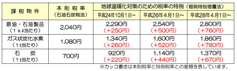 2012年10月1日より租税特別措置法に「地球温暖化対策のための石油石炭税の税率の特例」が適用されます。