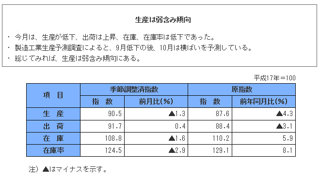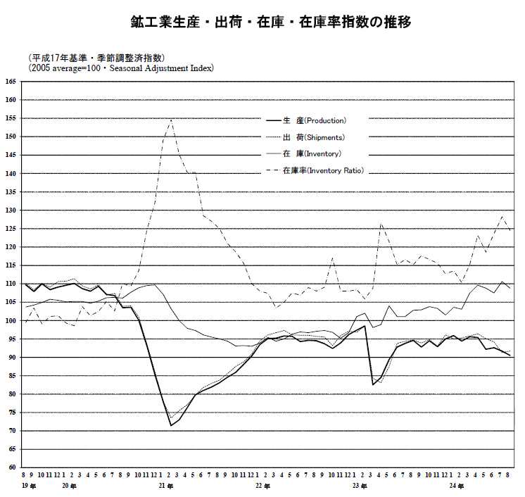 【経済産業省】鉱工業指数 平成24年8月分速報