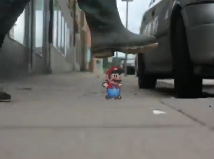 リアルの世界に迷い込んだマリオ