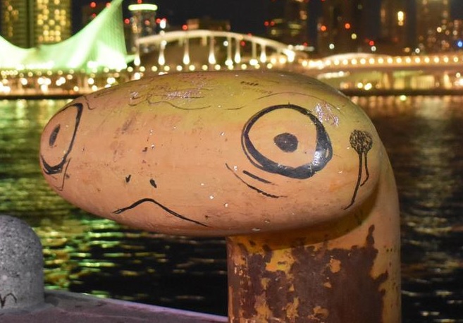 【神戸】港湾の岸壁に地球外生命体の落書き